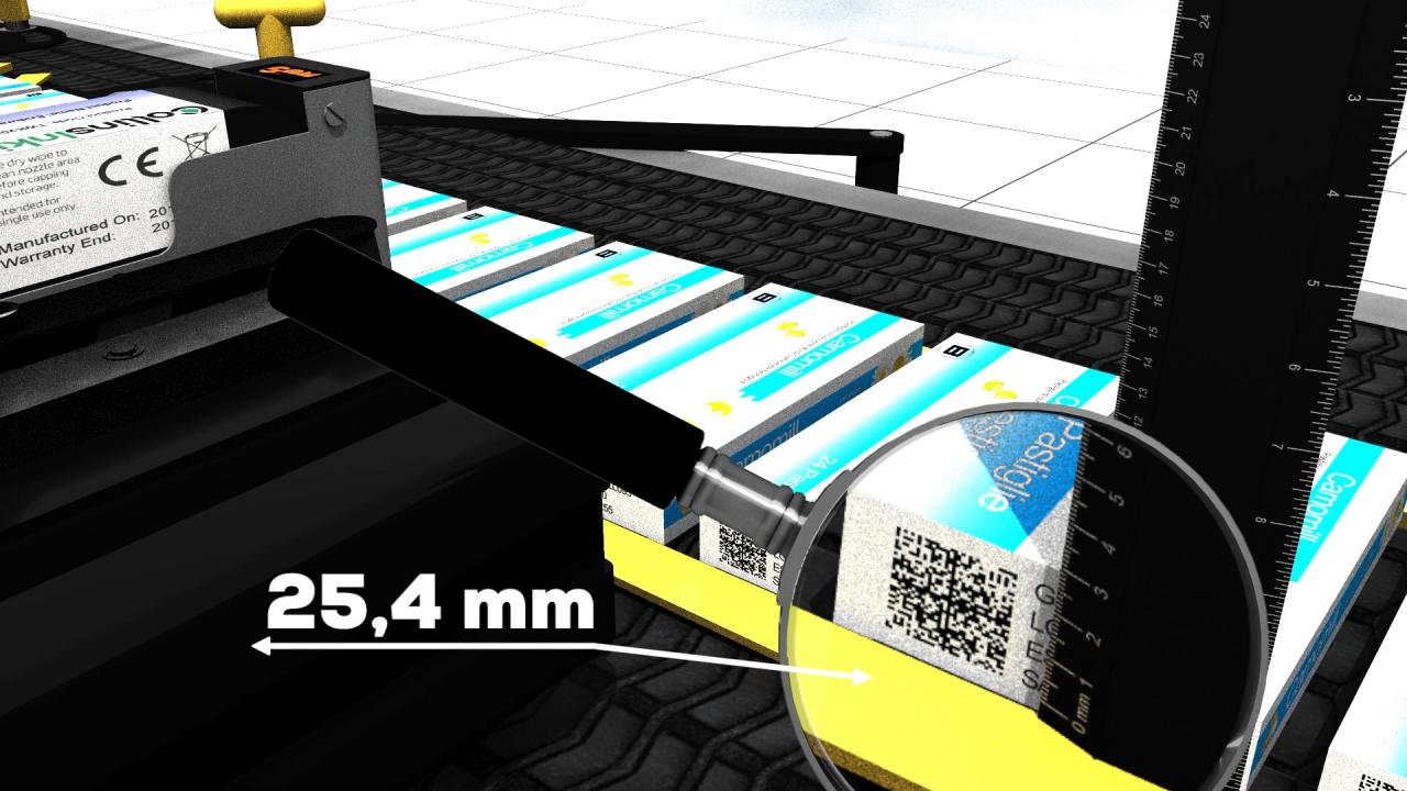 Ưu điểm của việc có một hộp mực 1 ((25 mm) duy nhất là khả năng in Mã vạch, mã 2D và logo chất lượng cao hơn với điều kiện không cần phải ghép nhiều bút hơn để in các thông tin đó.
